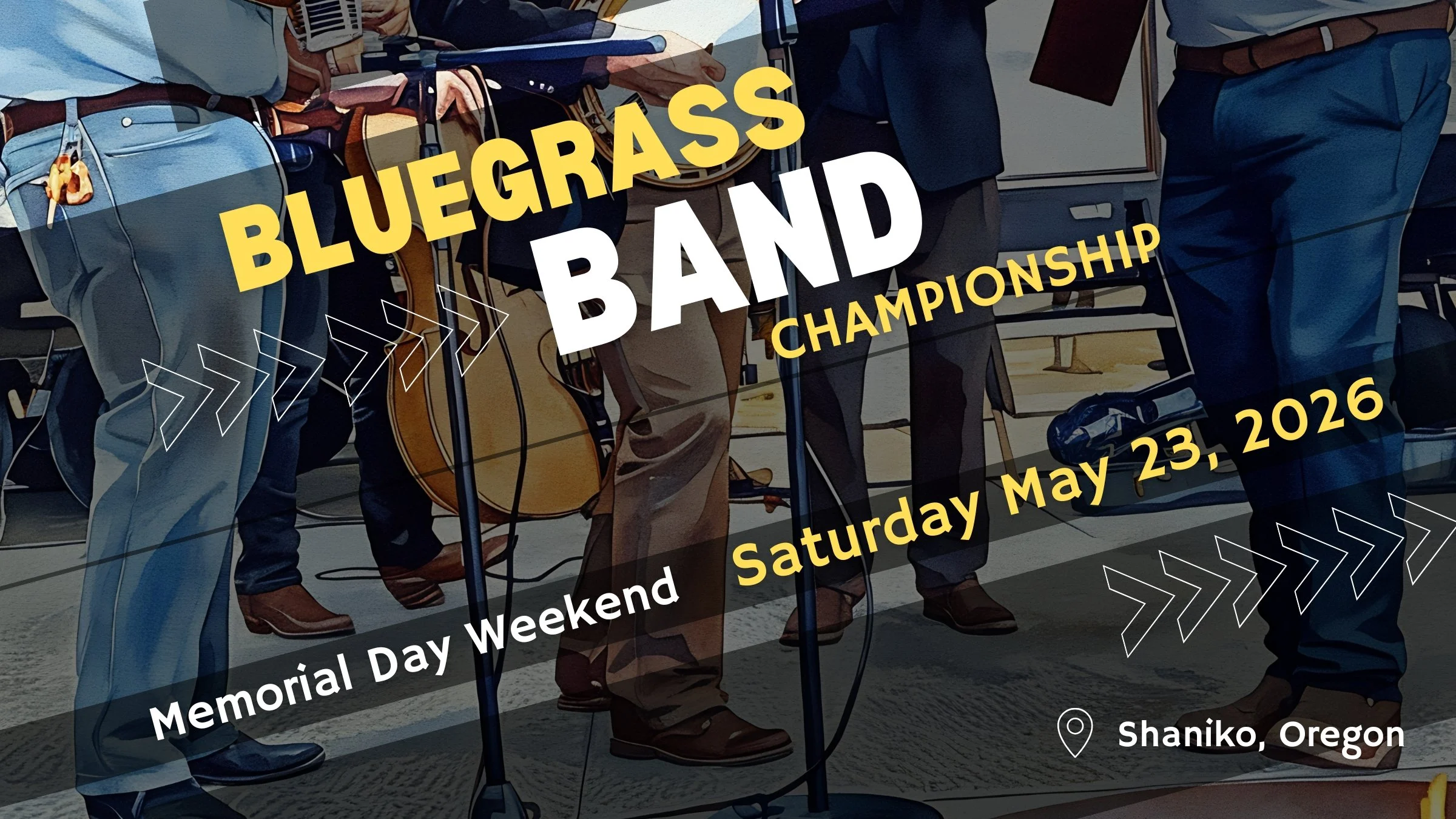 Bands invited to compete must play live in Shaniko, Oregon on May 23rd to be eligible to win the Bluegrass Band Championship.